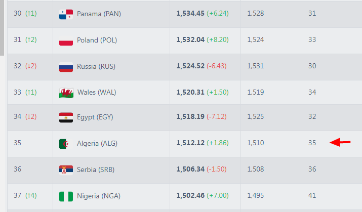 | 35 🇩🇿 | الجزائر | 1,516.12 | +6.11 (=) | 35 |