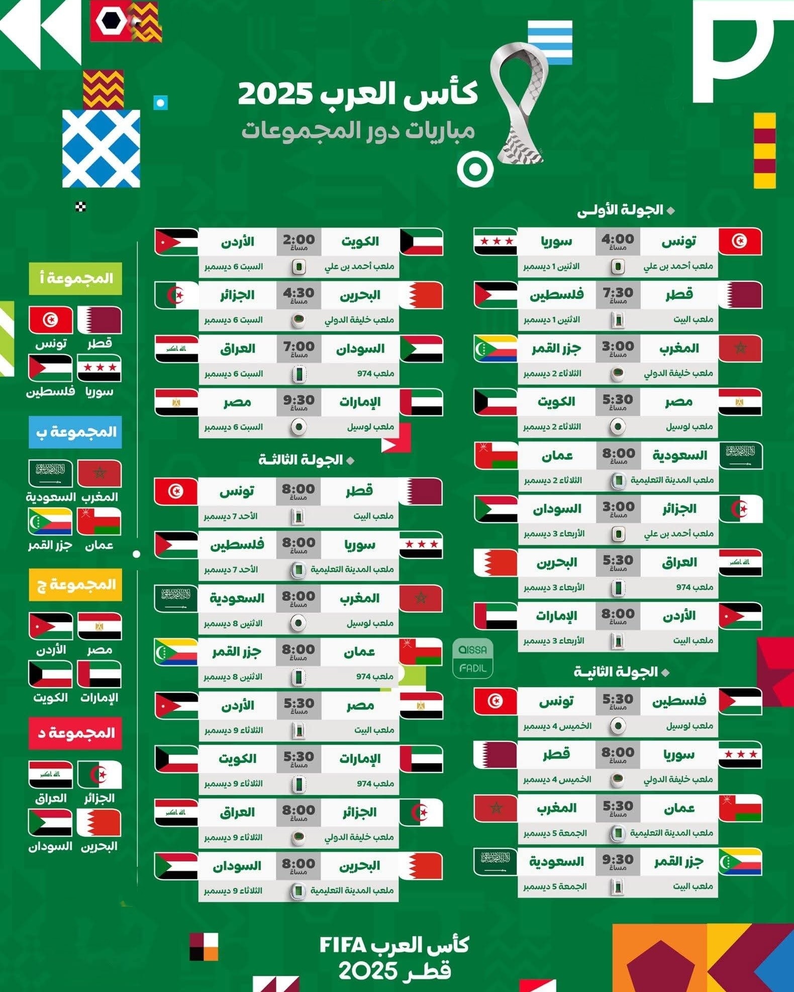 جدول معلّقي مباريات الجولة الأولى من كأس العرب 2025