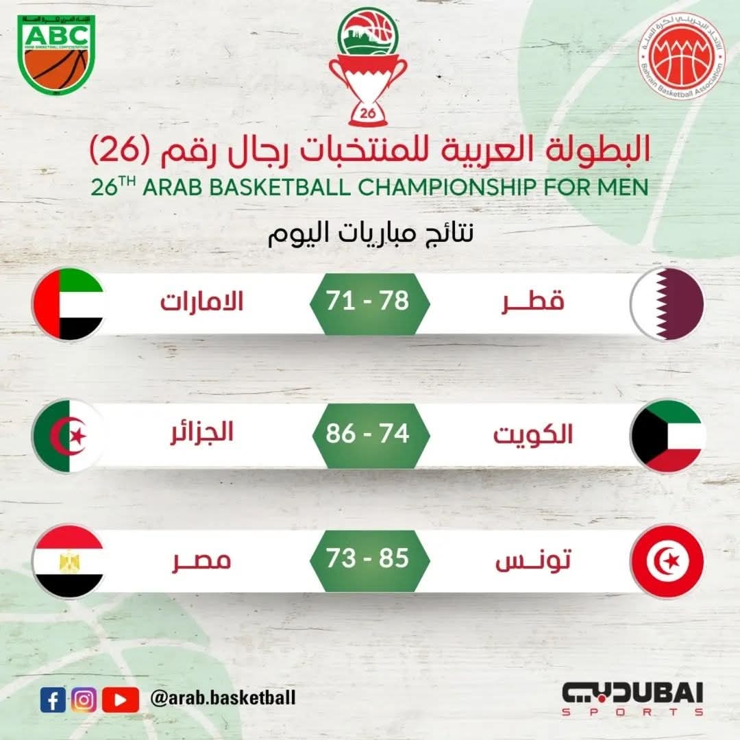 تتقاسم البحرين ومصر المركز الرابع برصيد 6 نقاط لكل منهما من 4 مباريات، فيما تحتل قطر المركز السادس بـ5 نقاط من 4 مباريات، وأخيراً الكويت بـ4 نقاط من 4 مباريات. هذا التقارب في النقاط يعكس المستوى المتقارب بين المنتخبات المشاركة في النسخة الـ26 من البطولة العربية لكرة السلة التي تستضيفها البحرين. البطولة تشهد مشاركة سبعة منتخبات من أصل 22 منتخباً منتسباً للاتحاد العربي لكرة السلة، مما يجعل المنافسة أكثر شراسة وإثارة.